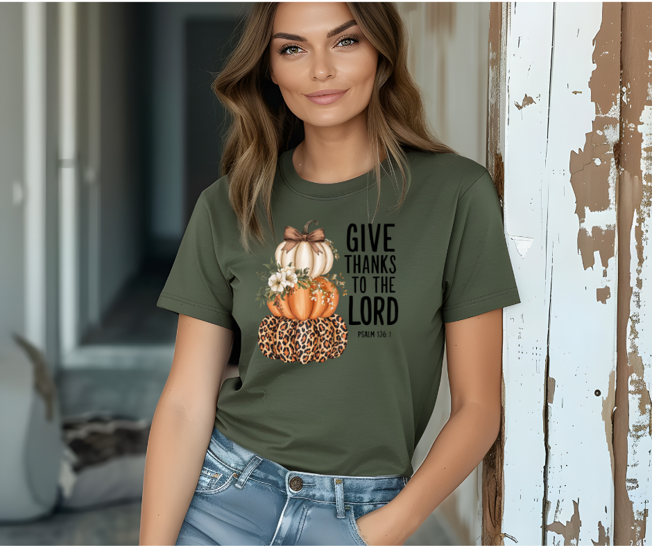 Faith meets comfort in this beautiful, heartfelt tee. Featuring the inspiring message “Give Thanks to the Lord” in elegant lettering, this shirt is a daily reminder to walk in gratitude and grace.